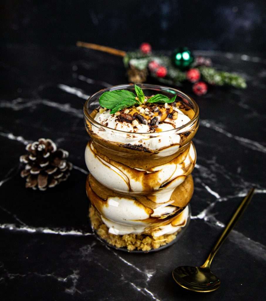 Wenn Kaffee sich mit Baileys und Frischkäse verbindet entsteht daraus ein köstliches, festliches Dessert, das Dein Weihnachtsmenü abrundet. Schmeckt natürlich auch an anderen Tagen einfach köstlich. Schlemmen bis zum letzten Löffel.